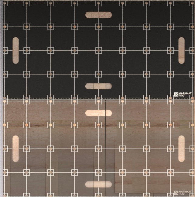 The MarkMatPro® is designed to fit across the width of an 8x4 sheet of plywood, giving you predetermined perforated measurements at 6 inches screw through, eliminating time spent measuring and marking the fixing points.